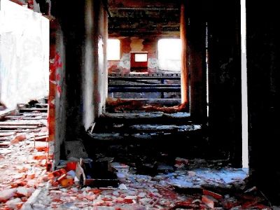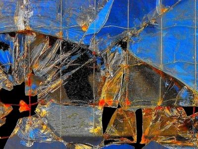 Verre avec armatures en éclats | Étoiles : éclats et poussières de verre / Broken reinforced glass | Stars : splinters and dust glass (Usines à l'abandon / Abandoned factories)
